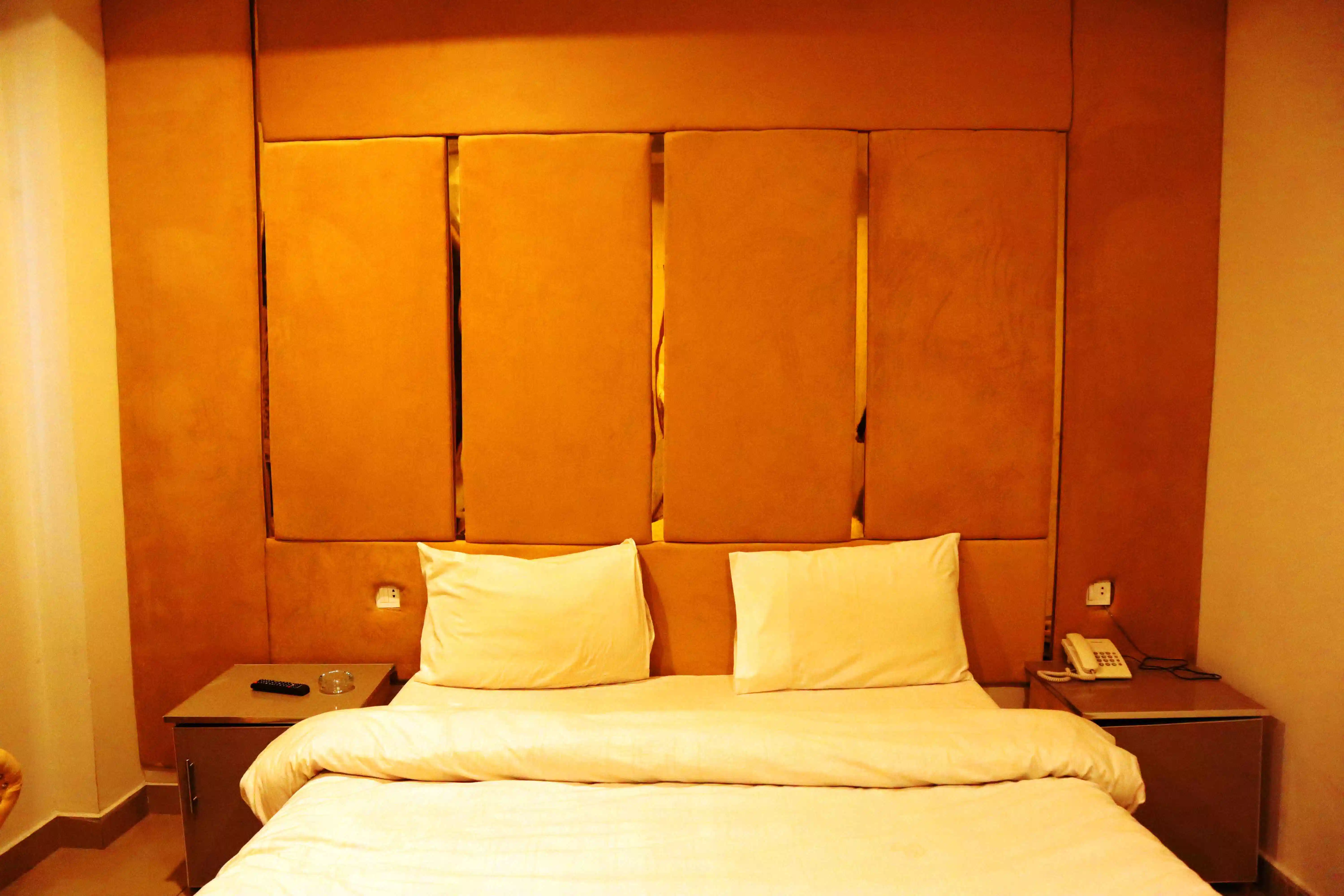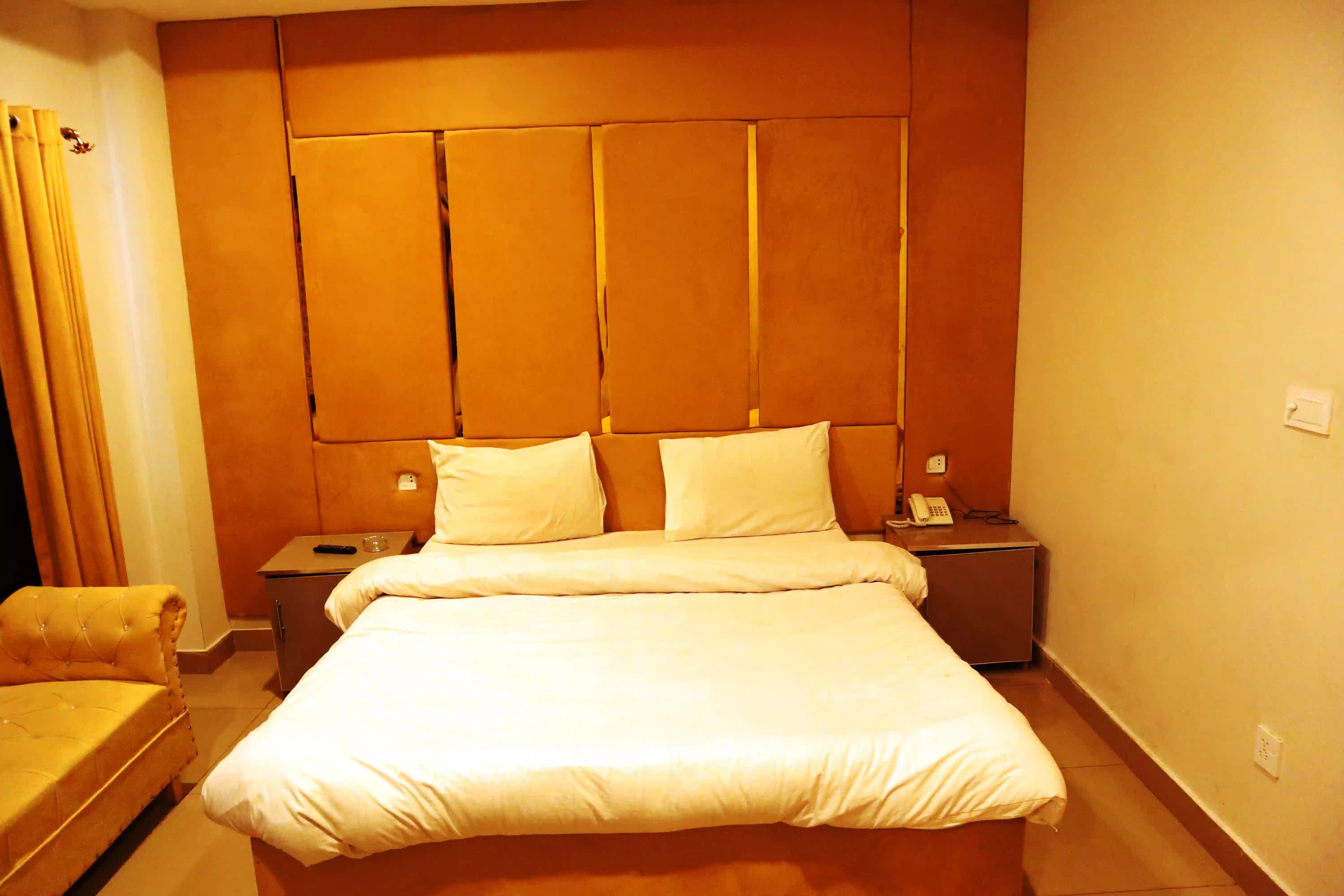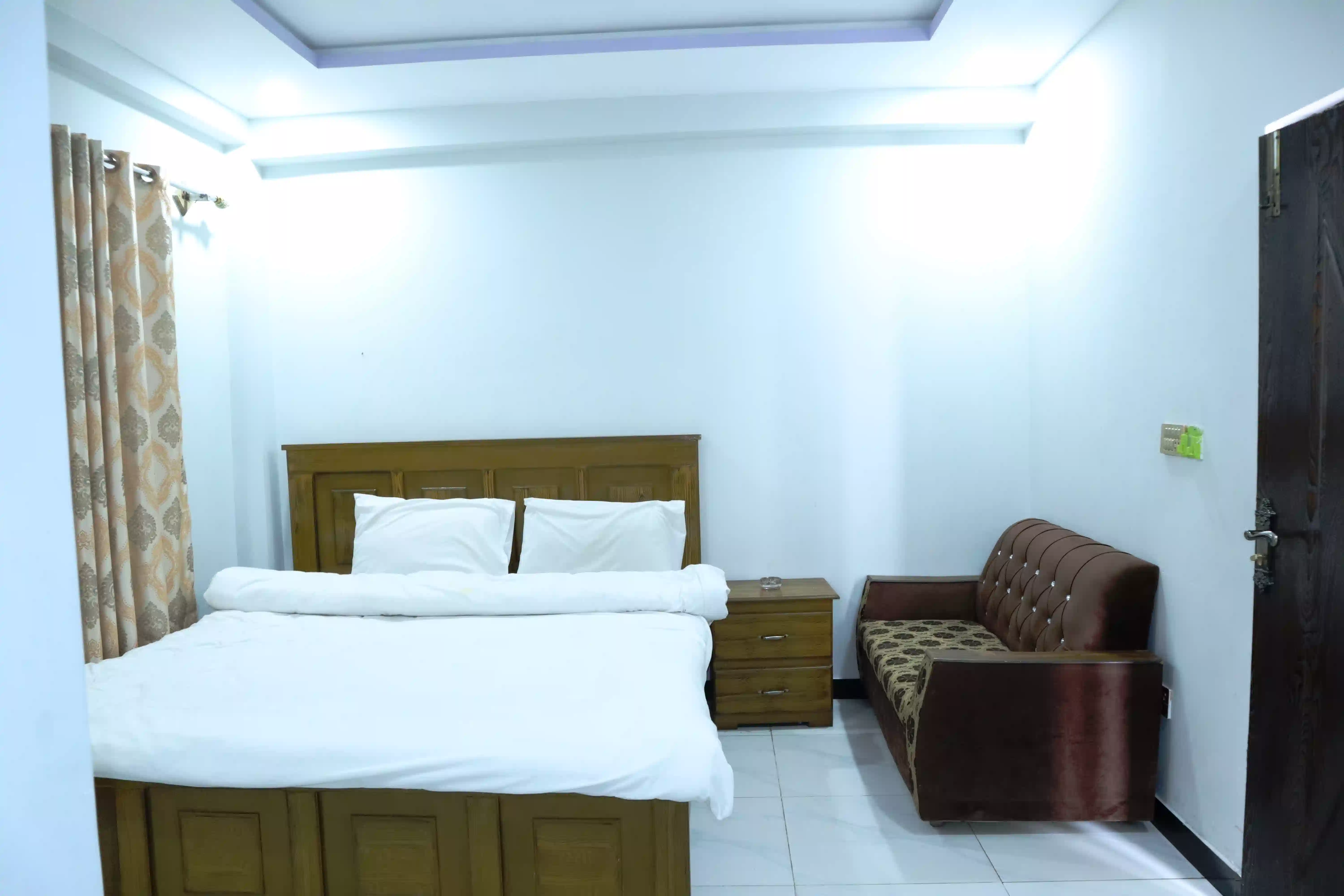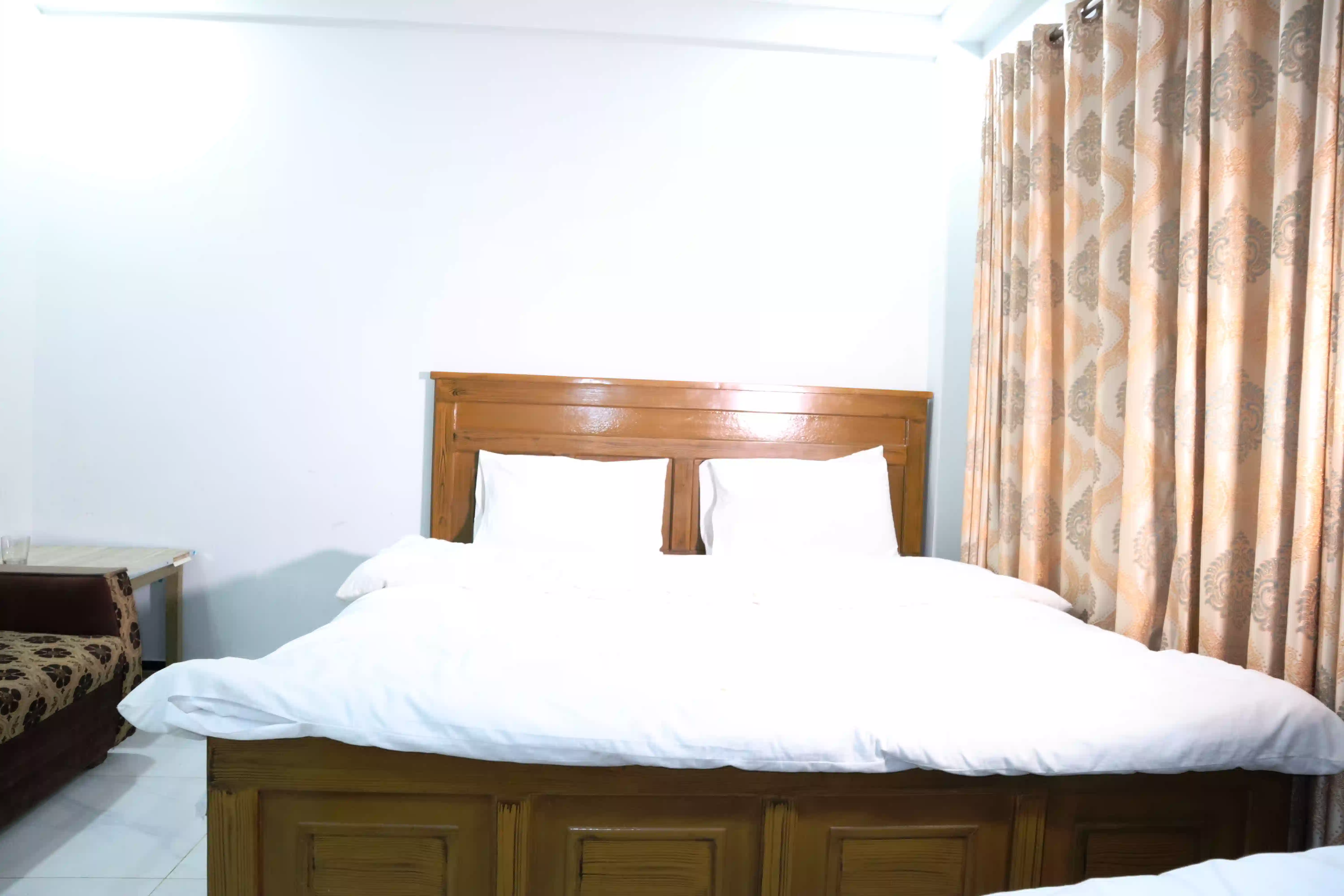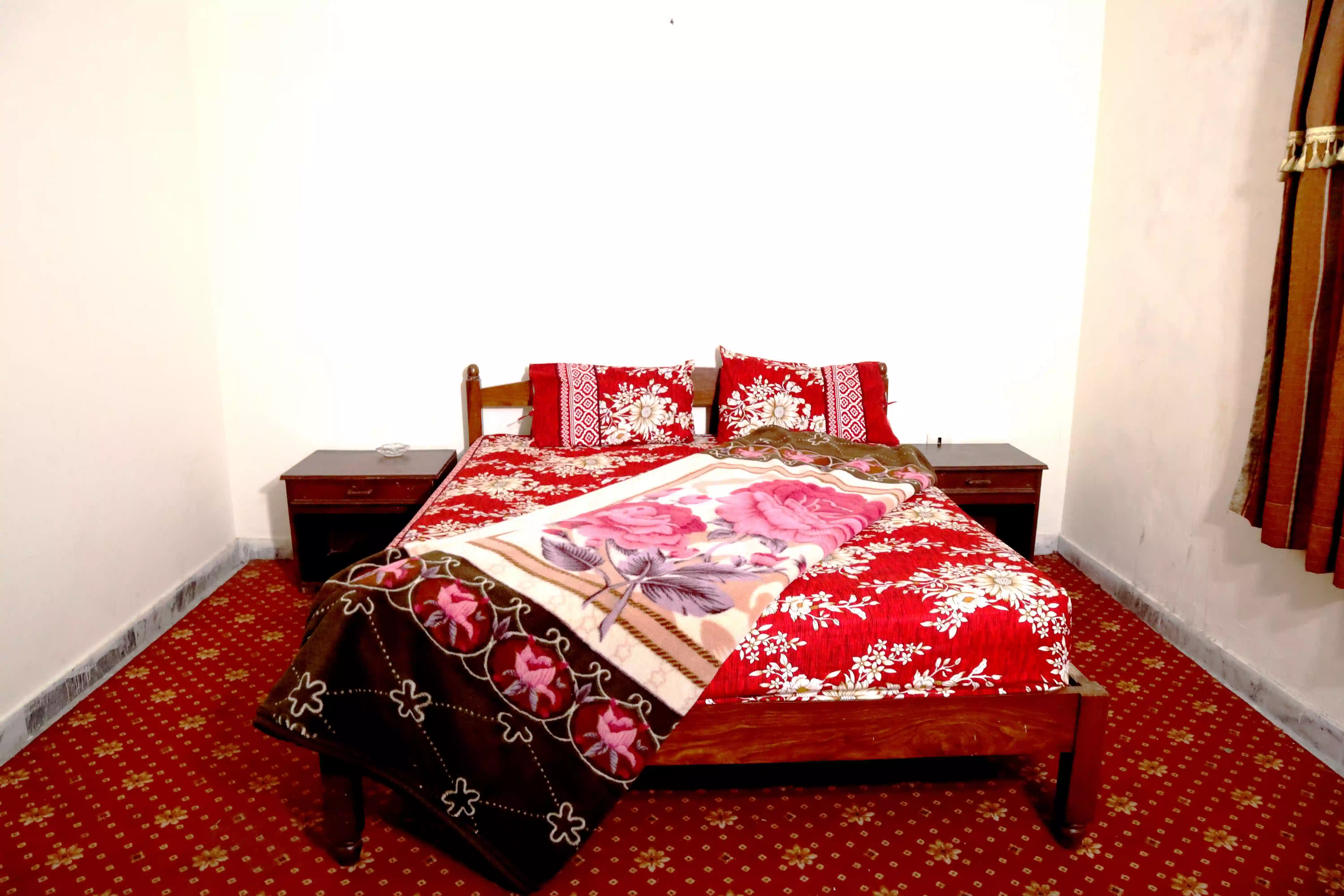 A comfortable double-bed room with an attached bath, free Wi-Fi, and room service. Located near Mall Road with easy access to nearby restaurants — perfect for a peaceful stay.