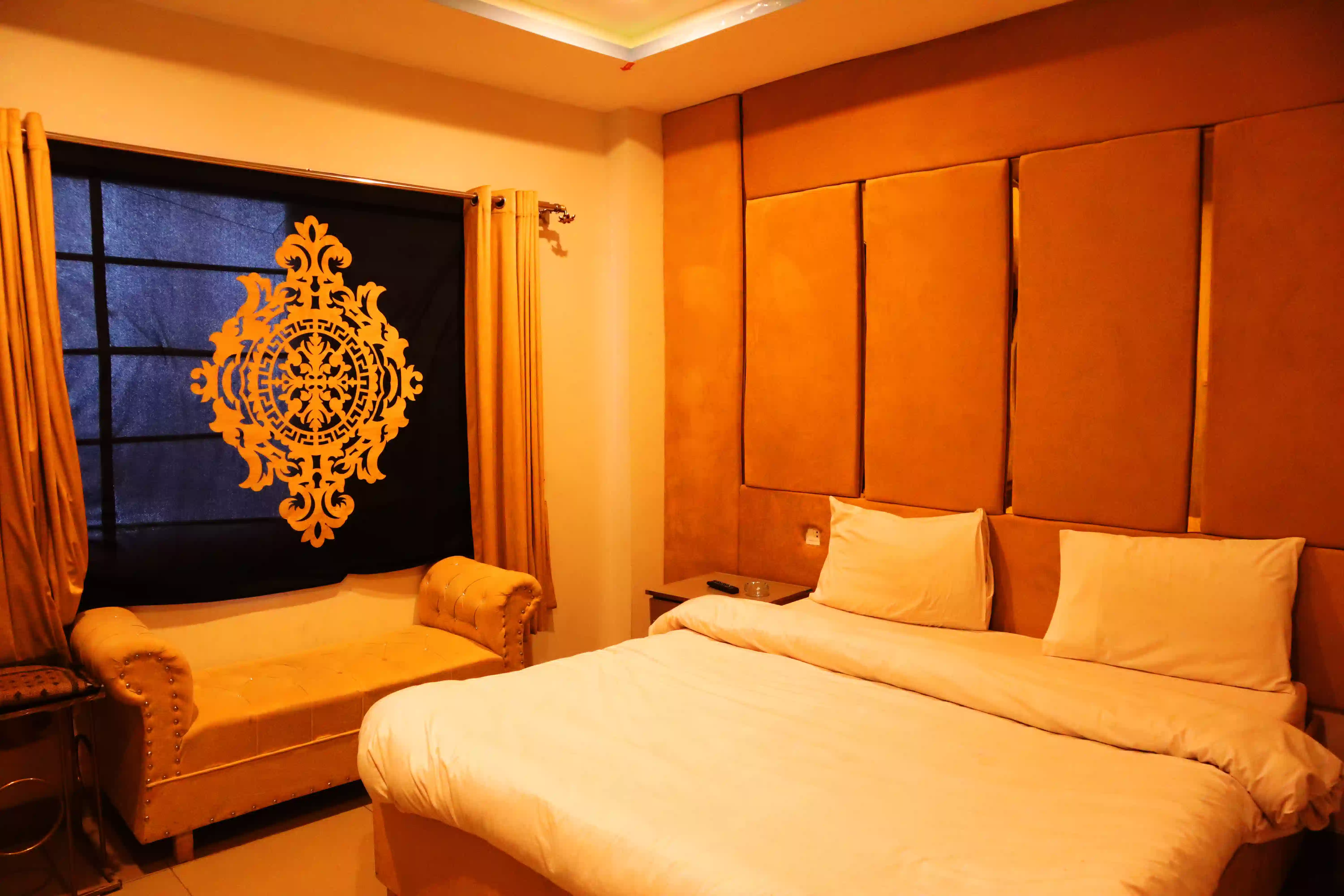 A comfortable double-bed room with attached bath, TV, free parking, room service, and Wi-Fi. Ideal for a relaxing stay with all essential facilities nearby and near to Mall Road.