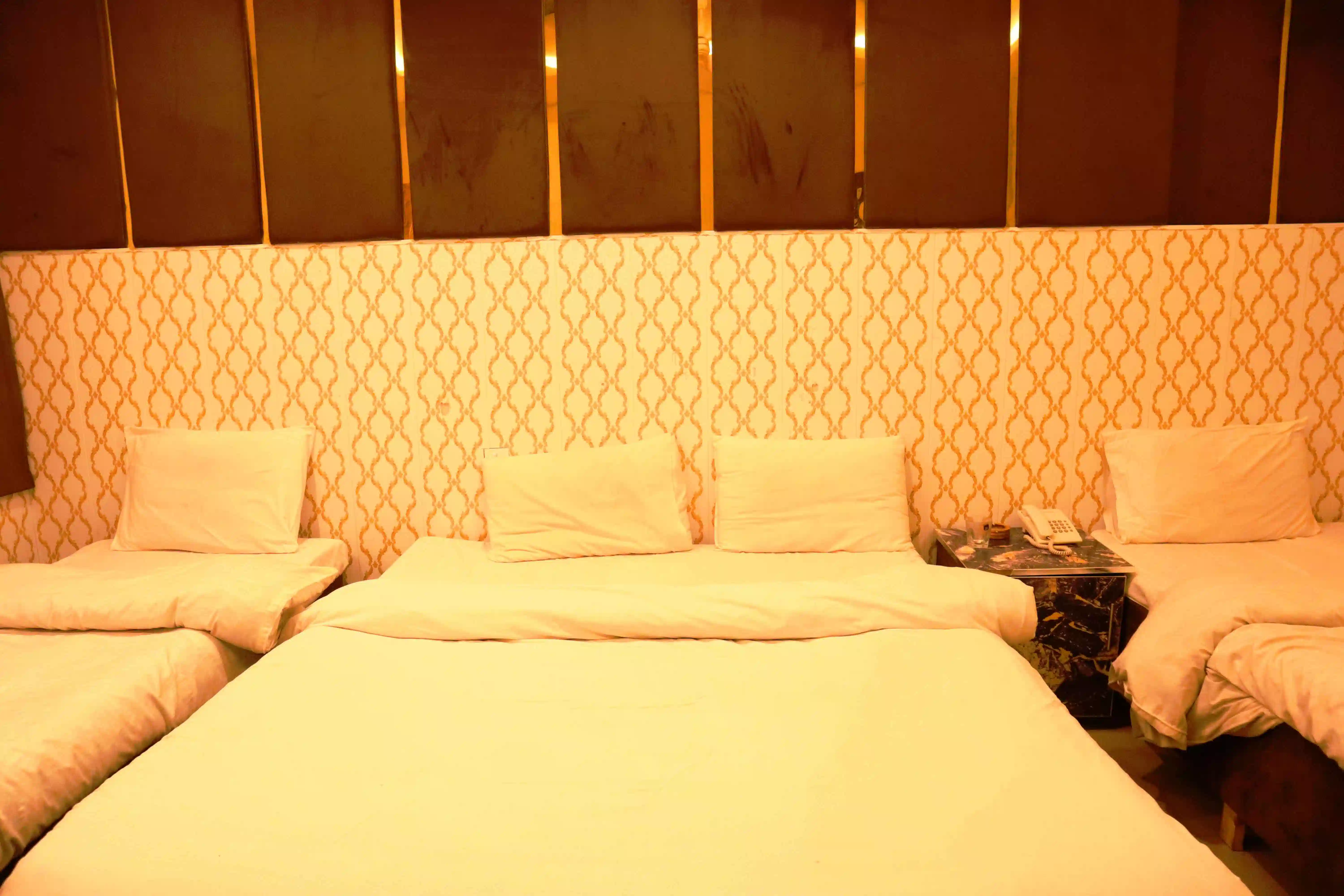 A cozy room with one double bed and one single bed, attached bath, free Wi-Fi, and room service. Perfect for small families or friends, with easy access to nearby restaurants.